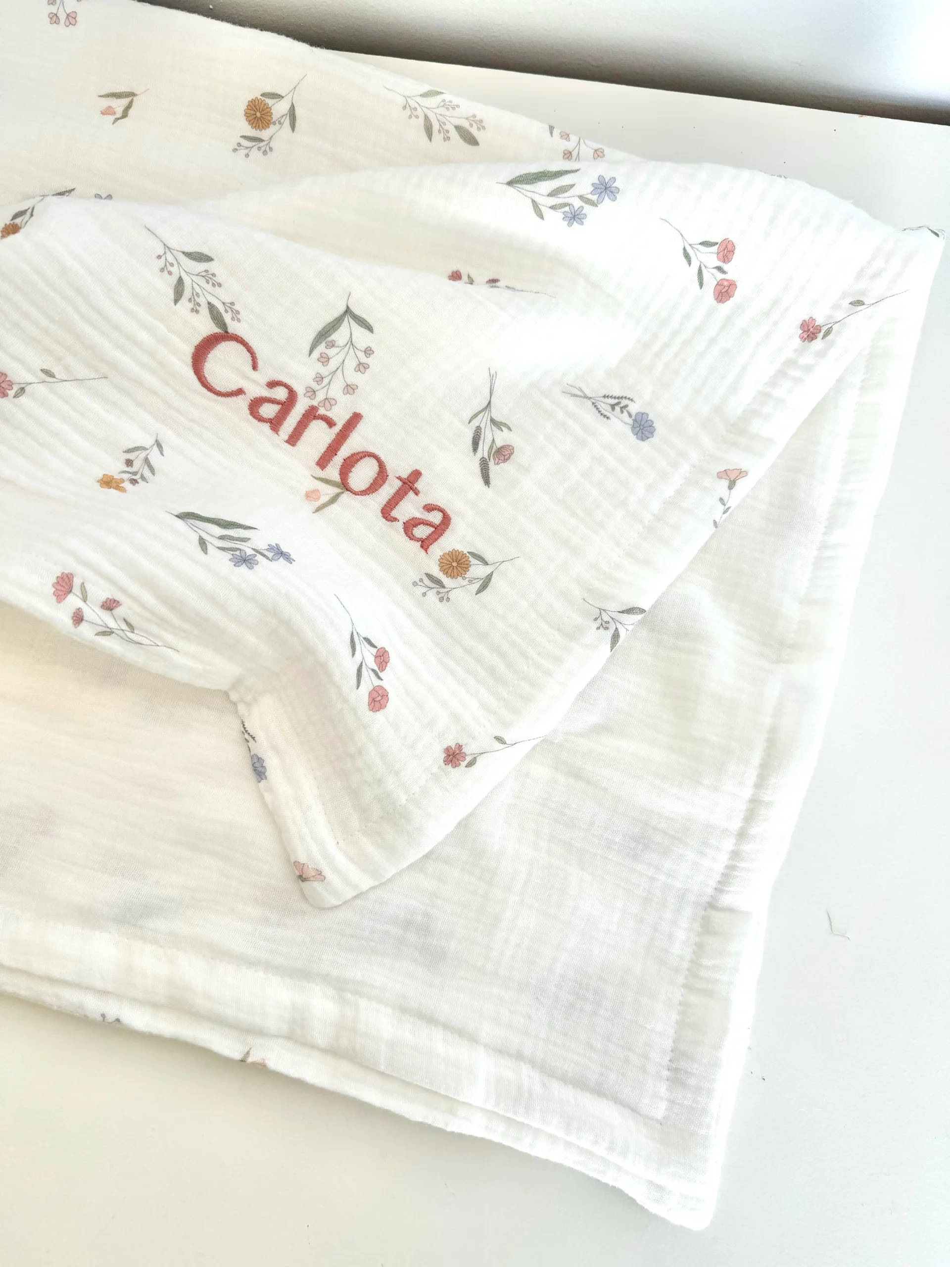 Manta dupla com duas camadas de musselina, sem enchimento.  Ideal para Primavera/Verão.