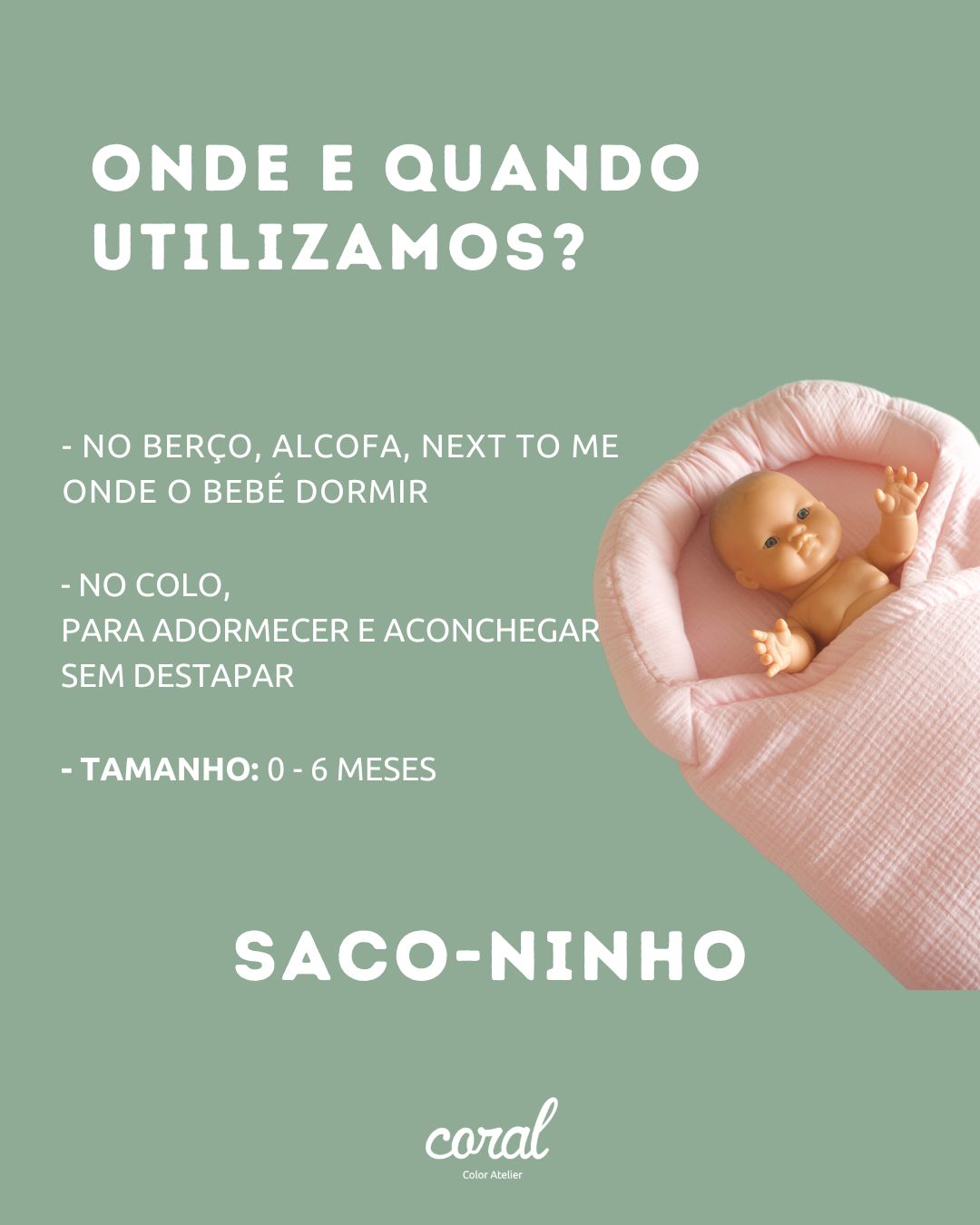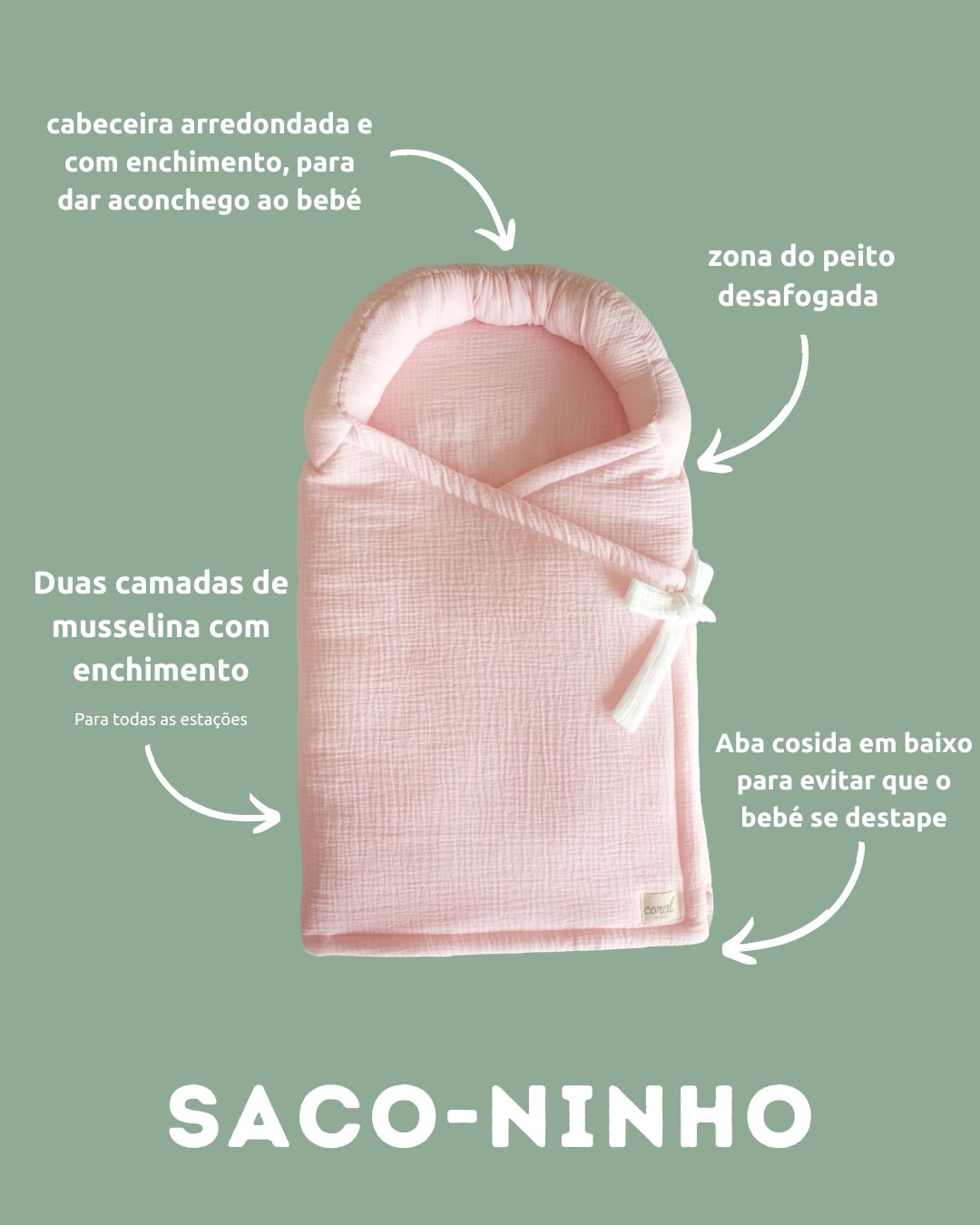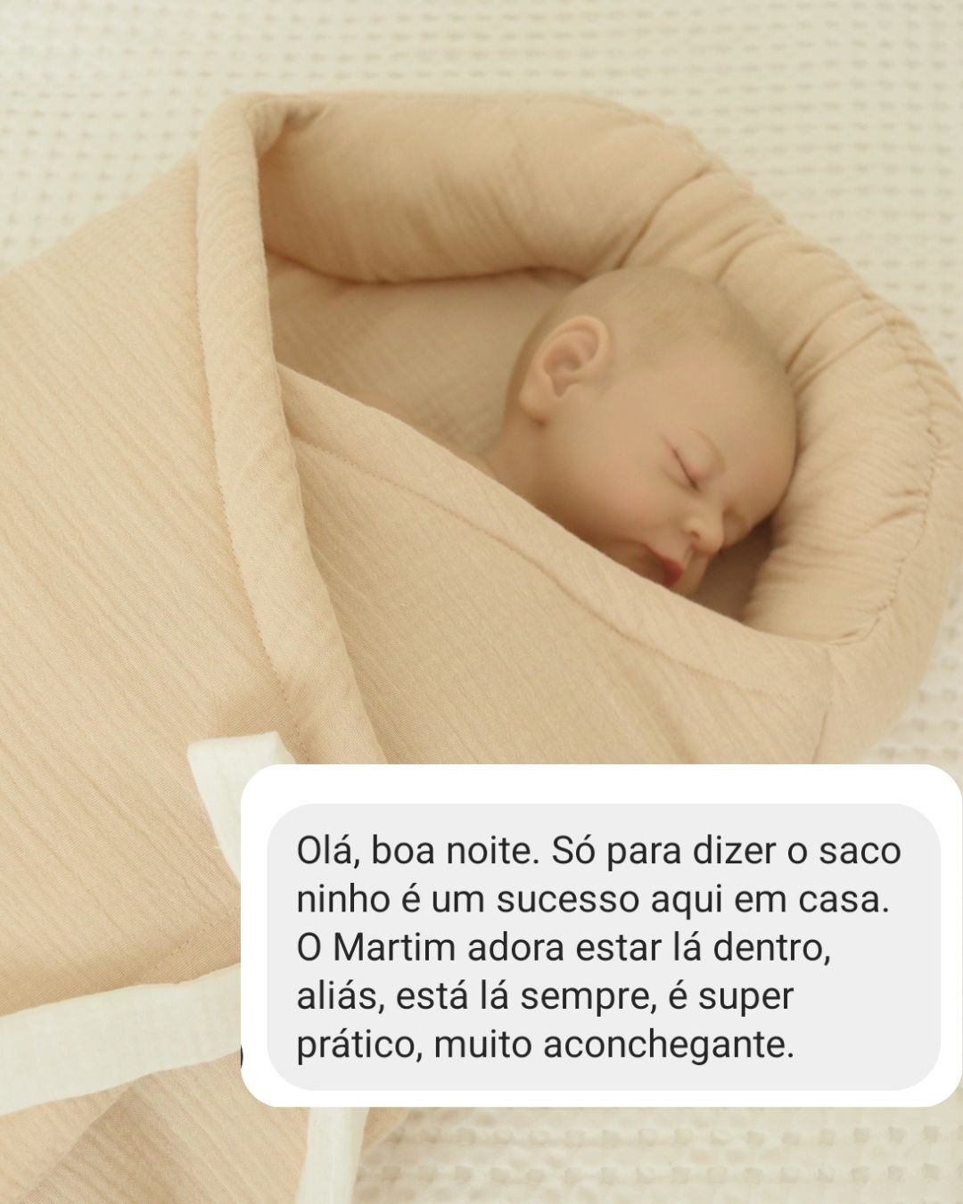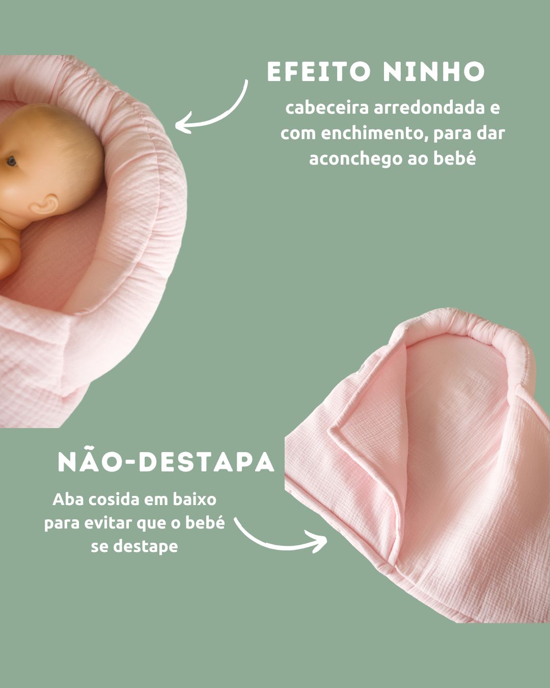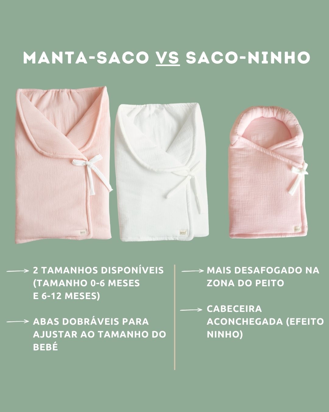 Sabemos que os bebés ADORAM aconchego na cabecinha. Quantas de nós já não fizemos rolinhos com mantas ou fraldas, de lado ou em volta da cabeça, só porque eles se sentem aconchegados assim?! Percebemos também que adoram encostar-se à cabeceira do ninho… E se as nossas MANTAS-SACO já eram um sucesso, porque não criar um artigo ainda mais específico para o sono dos recém-nascidos? Que podemos passar do colo diretamente para o berço? Sem que o bebé se destape? Seguro, confortável e ACONCHEGANTE?
